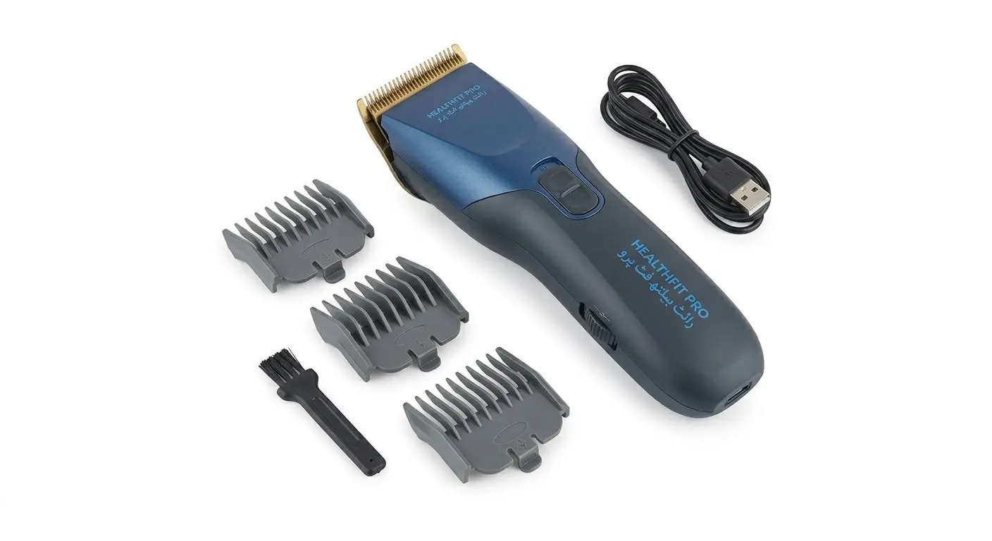 Sharp ceramic blades, LED display, adjustable speed, rechargeable battery (2-hour runtime), includes 4 combs.